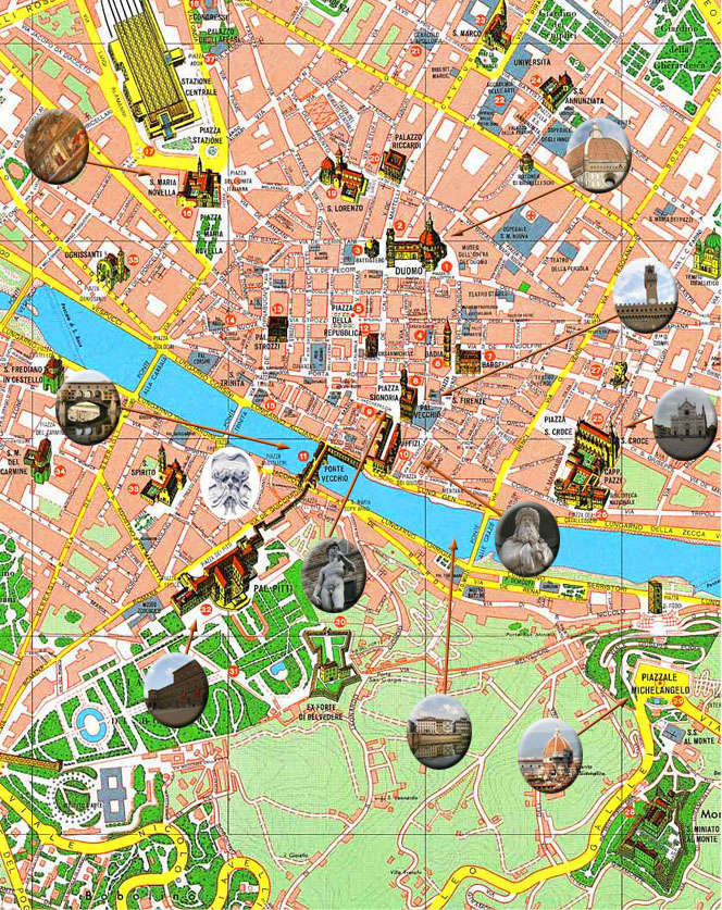 Tutte le principali attrazioni artistiche e culturali sono visitabili con una semplice passeggiata: oltre alla Piazza, al Palazzo Vecchio e al Ponte Vecchio, sono comodamente raggiungibili la Galleria degli Uffizi a 50mt, il Duomo con il Campanile di Giotto a 200 mt, le Cappelle Medicee in San Lorenzo, il Museo del Bargello, la bellissima Basilica di Santa Croce a 500 mt, la Galleria dell’Accademia a 500 mt nonché Palazzo Pitti, la Chiesa di Santo Spirito e il Giardino di Boboli appena al di là dell’Arno.